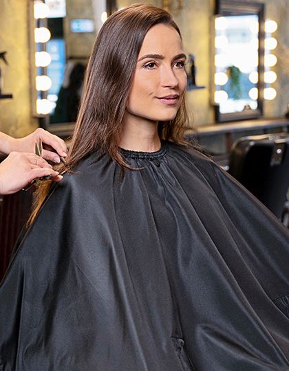 Wasserabweisender Haarschneideumhang mit kundenfreundlichen Handdurchgriffen