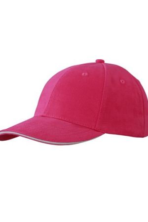 Sandwich Cap in zahlreichen Farbvarianten Stark gebürstete Baumwolle Messingfarbener Metallclip-Verschluss mit gestickter Öse Sechs gestickte Luftlöcher Sechs Ziernähte auf dem Schirm Laminierte Frontpanels Gefüttertes Satin-Schweißband
