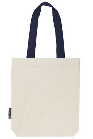 Fairtrade-zertifizierte Baumwolle Zertifizierte, gekämmte Bio-Baumwolle Köperbindung Farblich abgesetzte, lange Griffe Neutral- und Fairtrade-Label an der Seite Lieferung ohne Inhalt/Deko