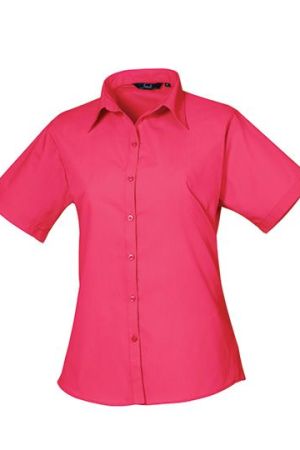 Pflegeleichtes Popeline-Gewebe Kurzen Ärmel Gleichfarbige Knöpfe Weicher Kragen Abgerundeter Saum Tailliert mit Abnähern WRAP-Zertifizierung