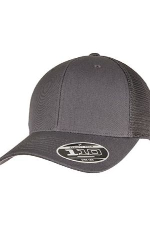 Front aus Baumwolle und blickdicht, Rückseite aus transparentem Polyester-Mesh Vorgebogener, achtfach gesteppter Schirm Snapback-Verschluss Integrierte Flexfit-Technologie