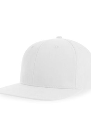 Zertifizierter recycelter Polyester-Twill (aus vier Flaschen hergestellt) Strukturierte Sechs-Segmente-Kappe mit durchgehenden Profi-Nähten Snapback-Verschluss aus recyceltem PVC Old-School-Look und flache Schirmform